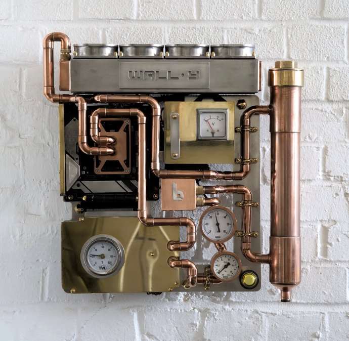 Felix: We do offer custom builds, but right now I’m the only one assembling PCs here, so we can only produce about two per year. I also kept the last PC (Wall-Y) and will keep the current project (the radiator—that’s not its final name), which limits our production for now. We’re still in a phase where we’re discovering our style and processes, and we want to create the PCs we want to make. So it’s difficult to find a buyer in advance when neither they nor we really know what the final product will look like. We have already sold one finished PC at auction (The Boiler), and this is probably how future builds will proceed until we have slightly more standardized, reproducible PCs.